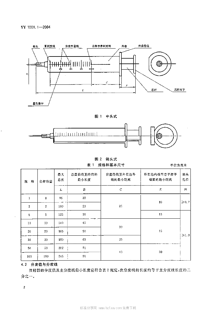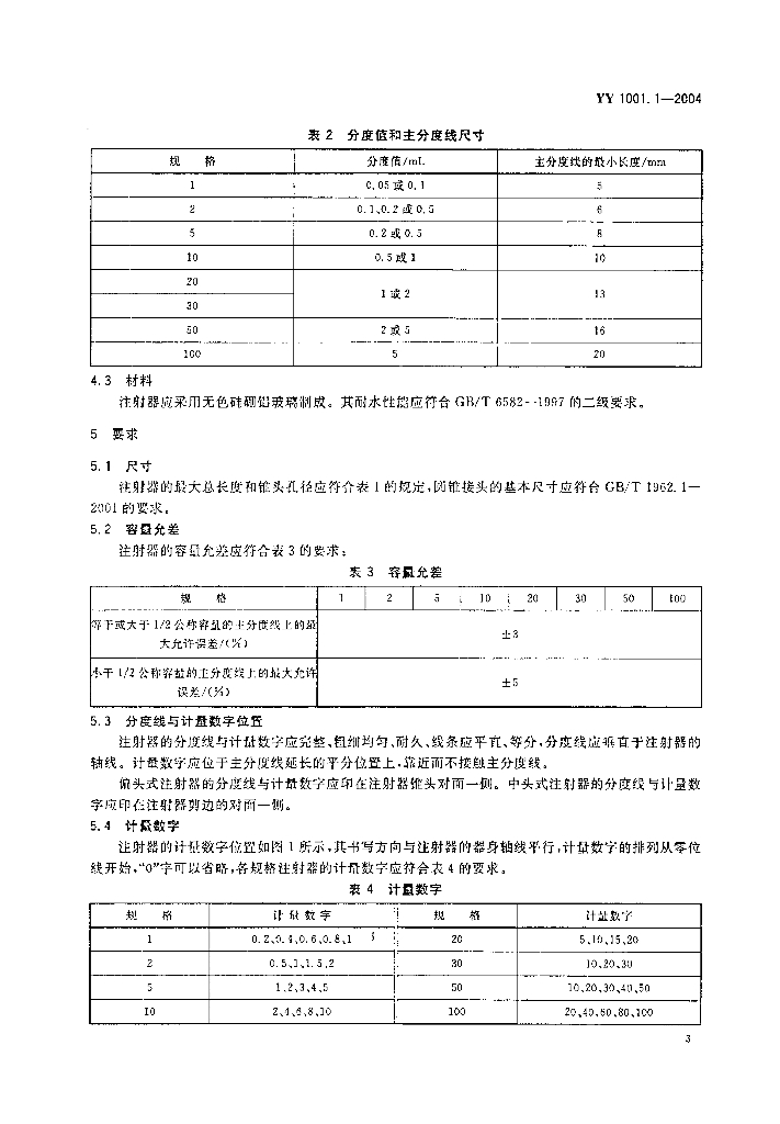 YY 1001.1-2004 玻璃注射器 第1部分:全玻璃注射器