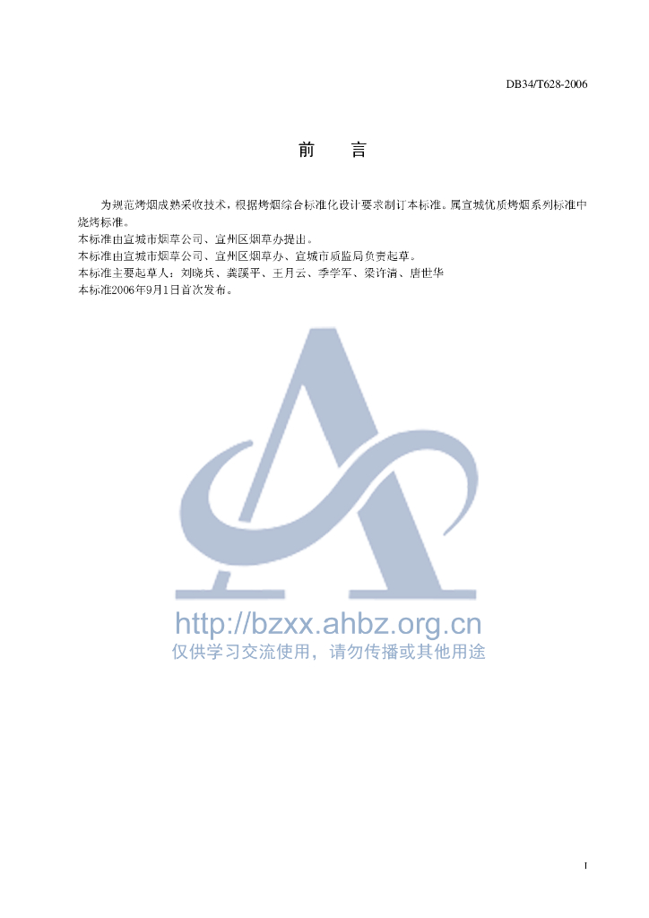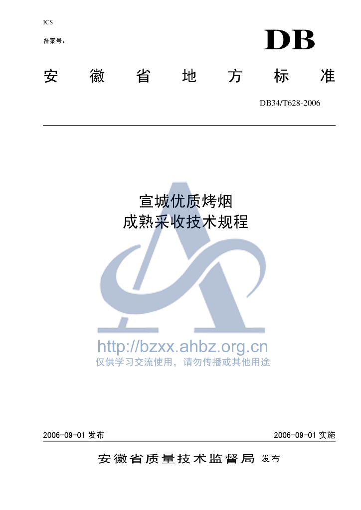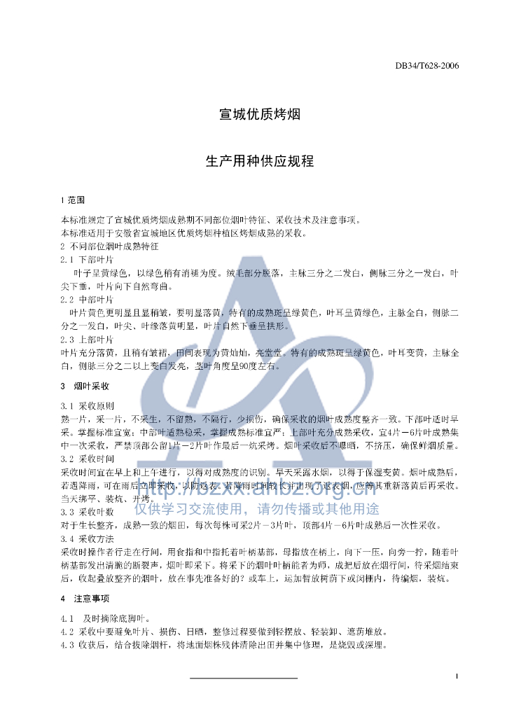 DB34/T 628-2006 宣城优质烤烟成熟采收技术规程