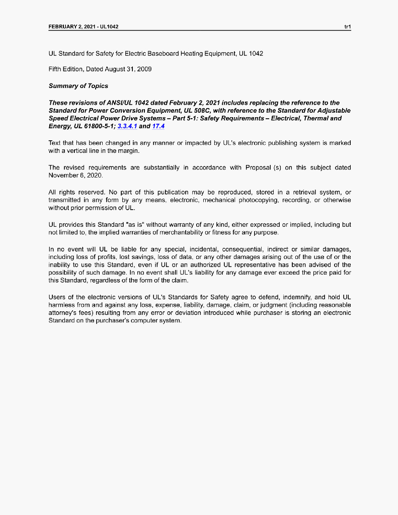 UL 1042 STANDARD FOR SAFETY Electric Baseboard Heating Equipment