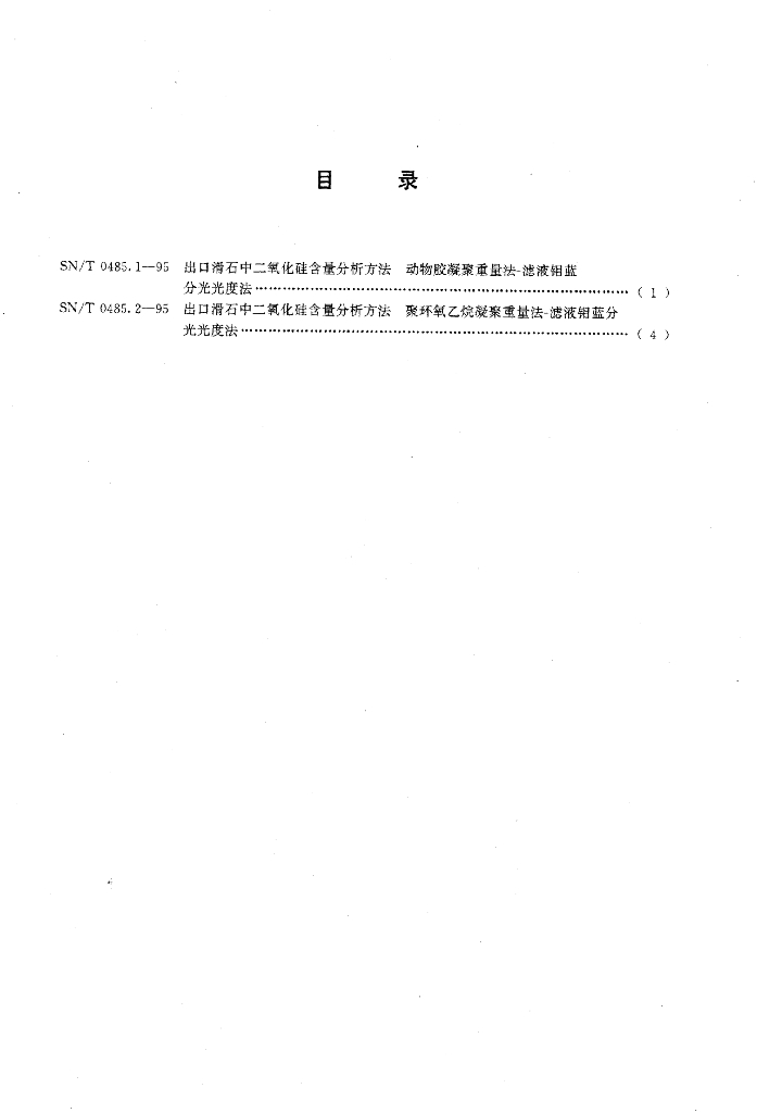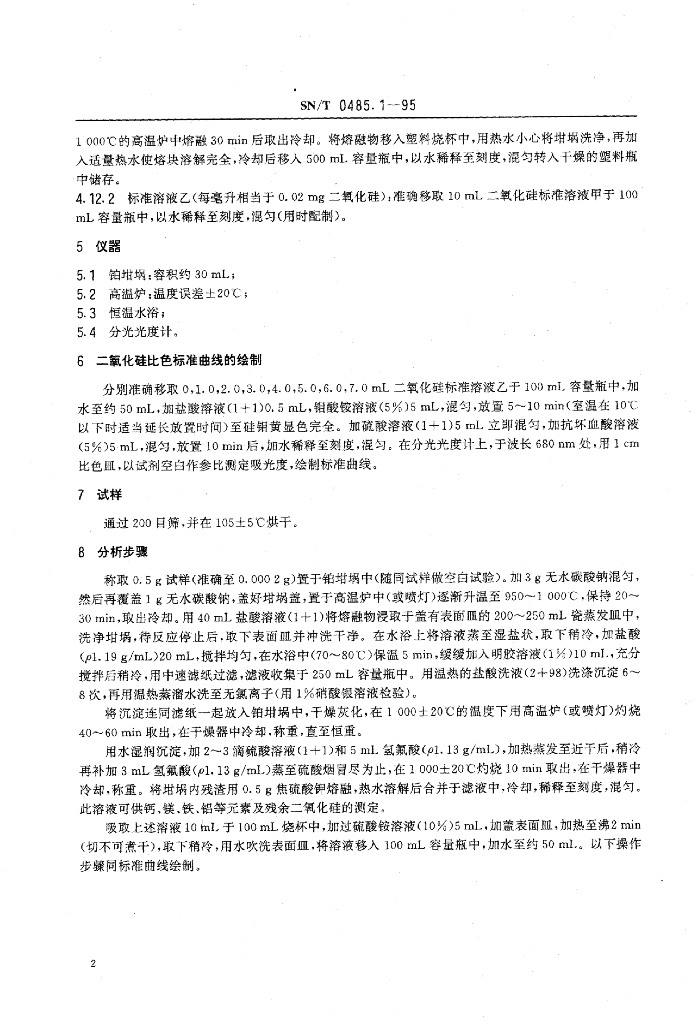 SN/T 0485.1~0485.2-1995 出口滑石中二氧化硅含量分析方法