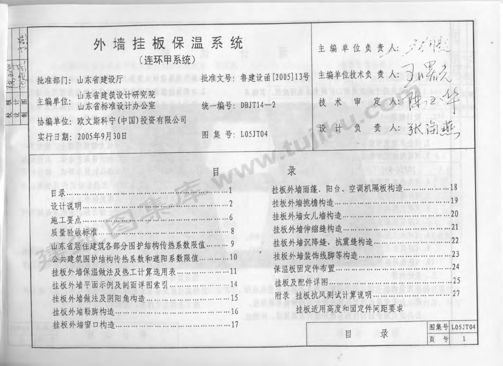 L05JT04 外墙挂板保温系统(连环甲系统)图集