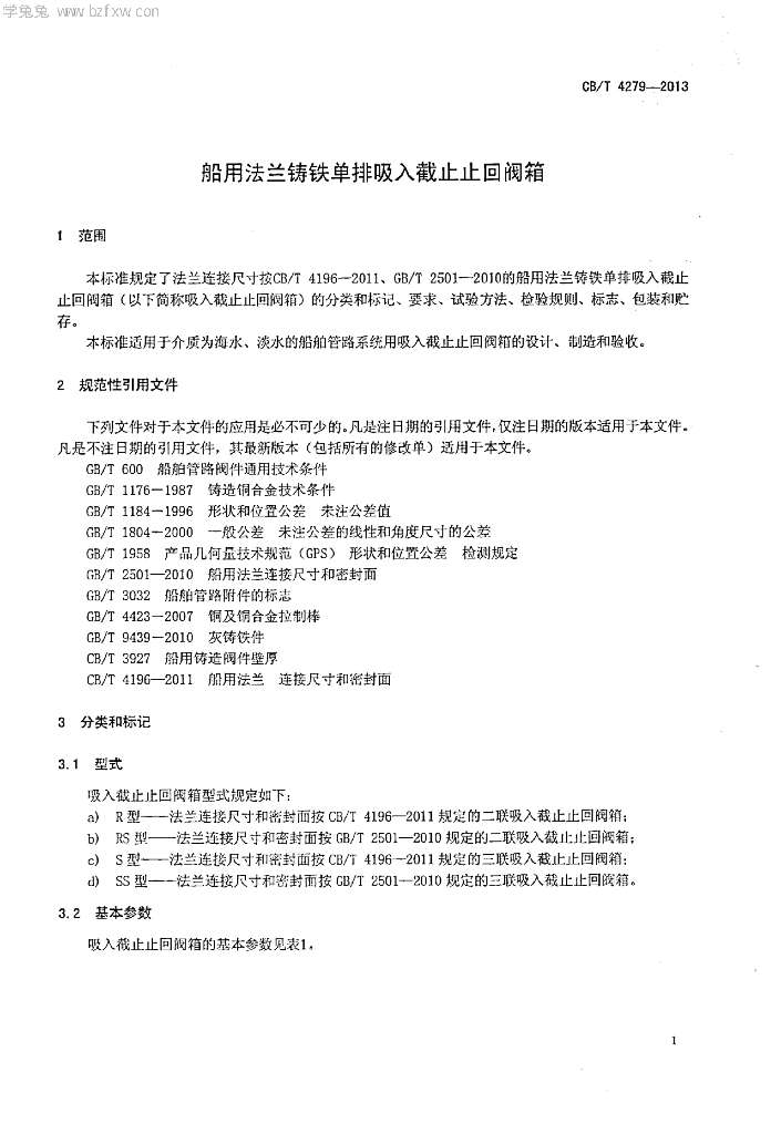 CB/T 4279-2013 船用法兰铸铁单排吸入截止止回阀箱