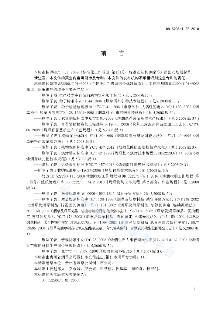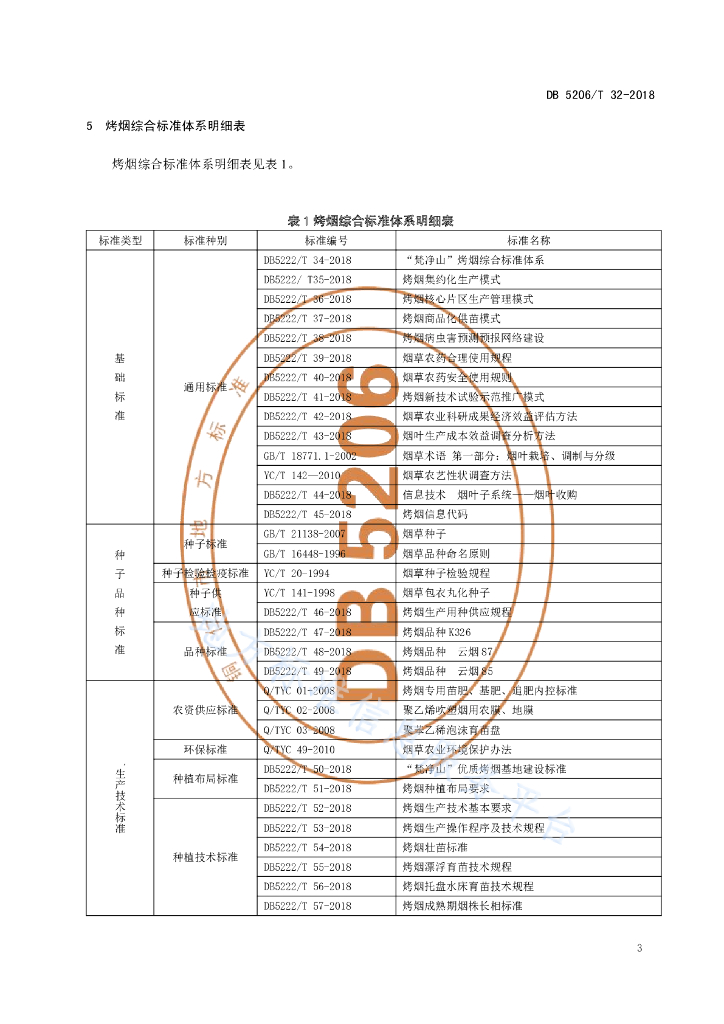 DB5206/T 32-2018 “梵净山”烤烟综合标准体系