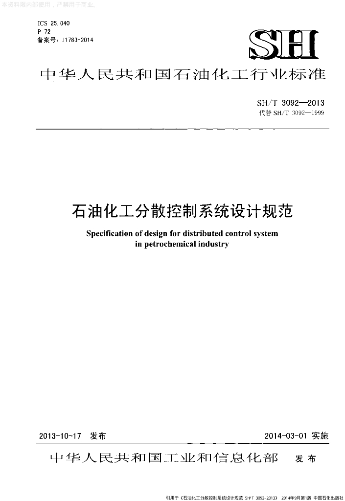 SH/T 3092-2013 石油化工分散控制系统设计规范