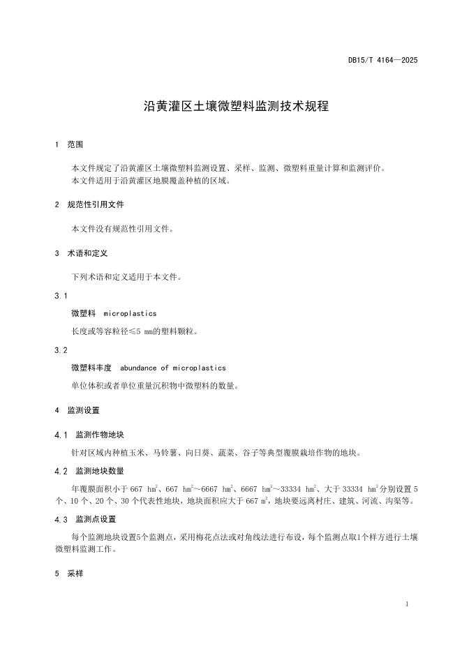 DB15/T 4164-2025 沿黄灌区土壤微塑料监测技术规程