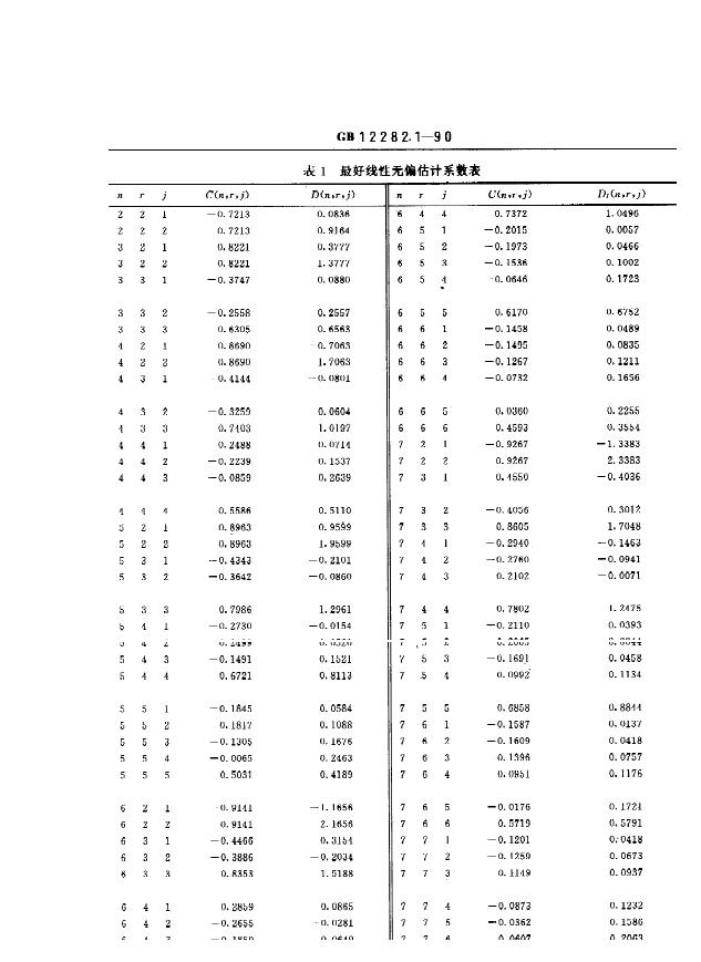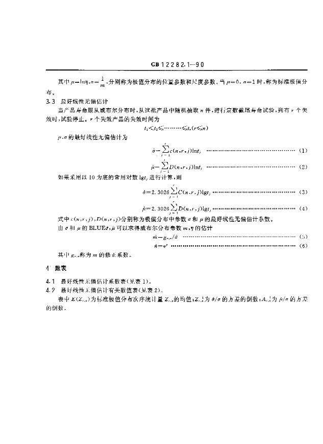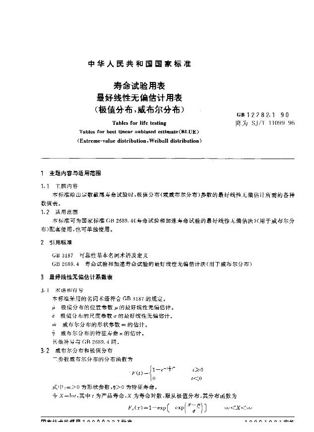 SJ/T 10345.1-1993 寿命试验用表最好线性无偏估计用表极值分布