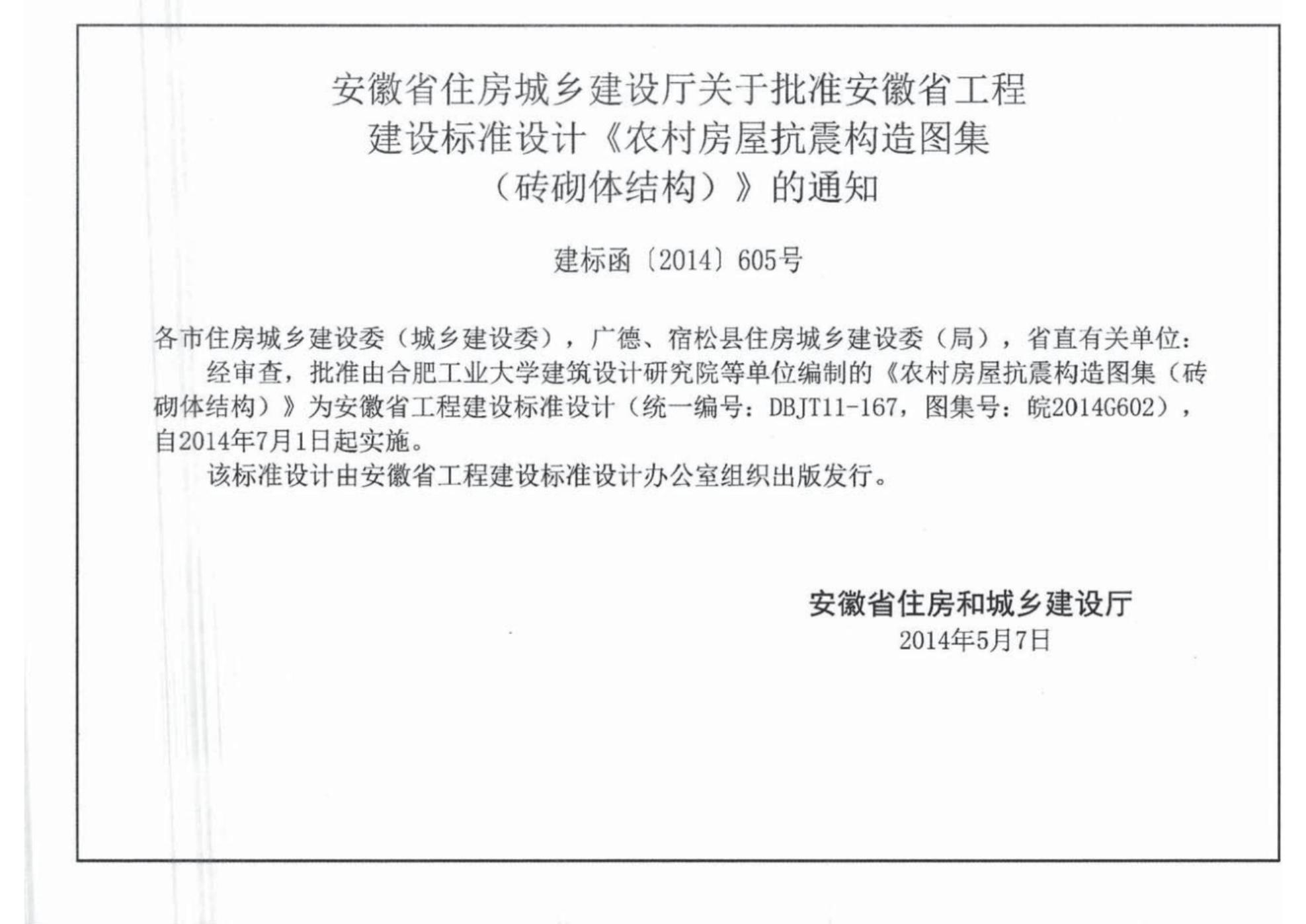 皖2014G602 农村房屋抗震构造图集一砖砌体结构图集(DBJT11-167)