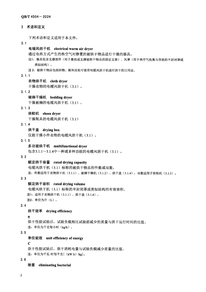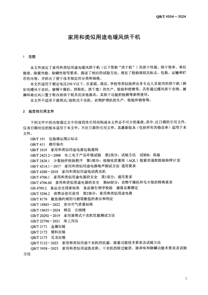 QB/T 4504-2024 家用和类似用途电暖风烘干机