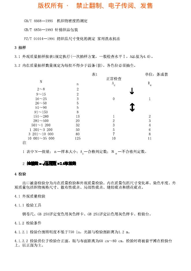 SN/T 1011-2001 出口被套检验规程