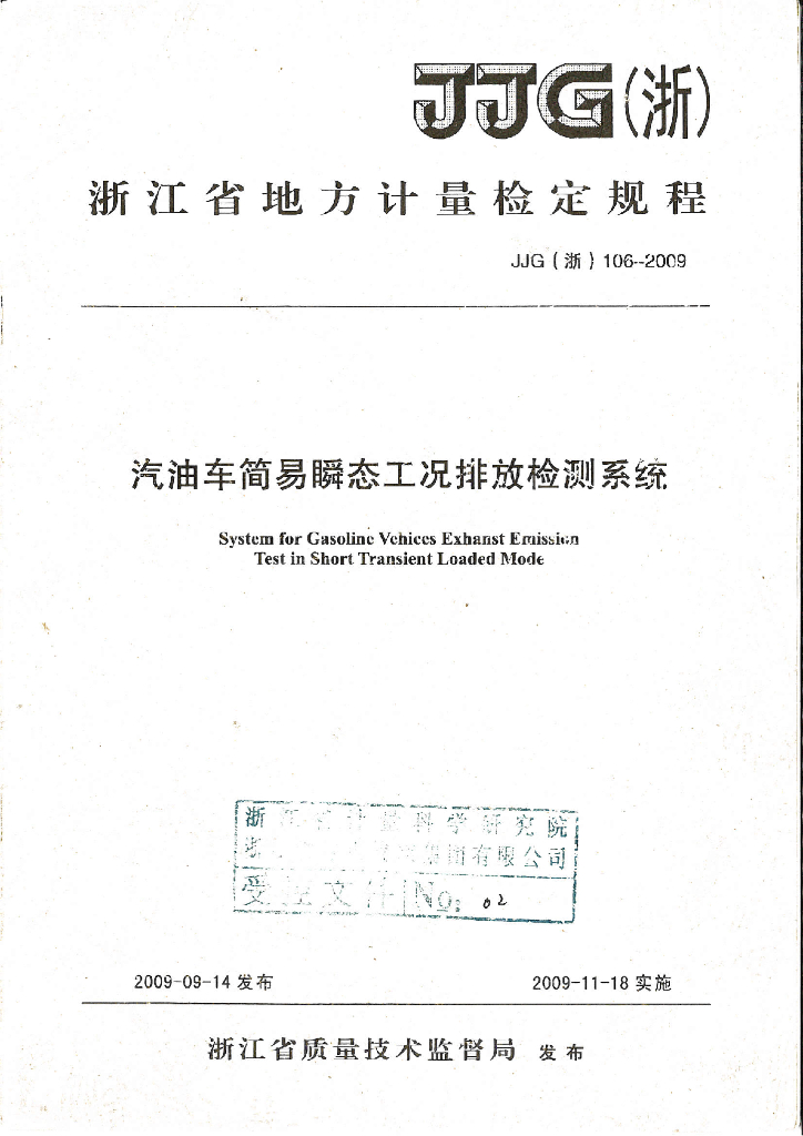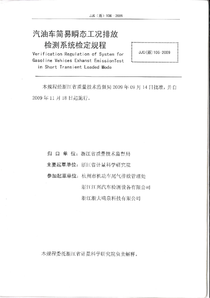 浙江省计量科学研究院、杭州市机动车尾气排放管理处、浙江江兴汽车检测设备有限公司、浙江浙大鸣泉科技有限公司