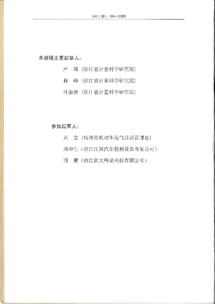 严瑾(浙江省计量科学研究院)、林峰(浙江省计量科学研究院)、叶振洲(浙江省计量科学研究院)、刘宏(杭州市机动车尾气排放管理处)、周申生(浙江江兴汽车检测设备有限公司)、项震(浙江浙大鸣泉科技有限公司)