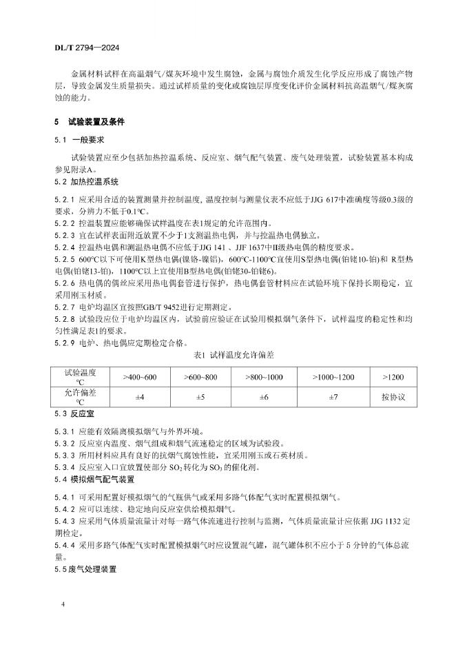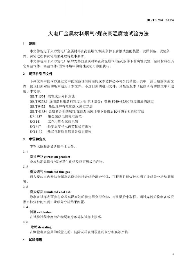 DL/T 2794-2024 火电厂金属材料烟气/煤灰高温腐蚀试验方法