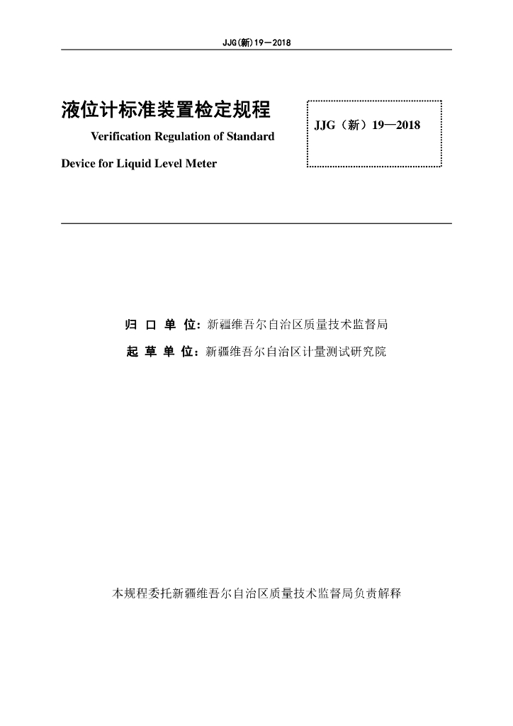 JJG(新)19-2018 液位计标准装置