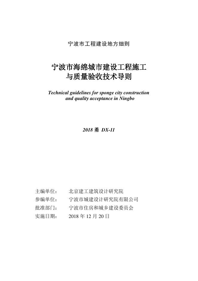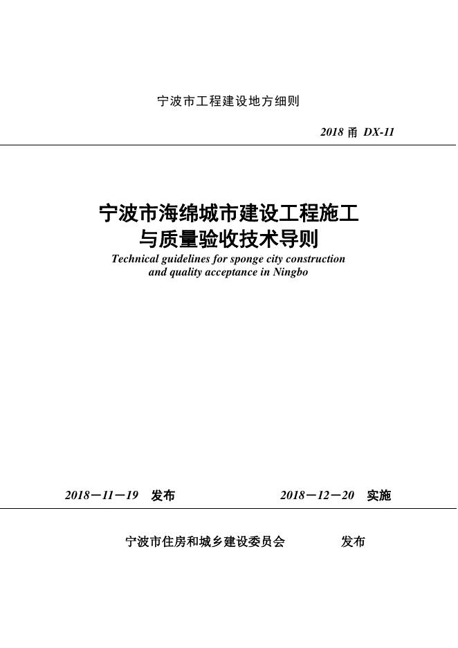 2018甬DX-11 宁波市海绵城市建设工程施工与质量验收技术导则