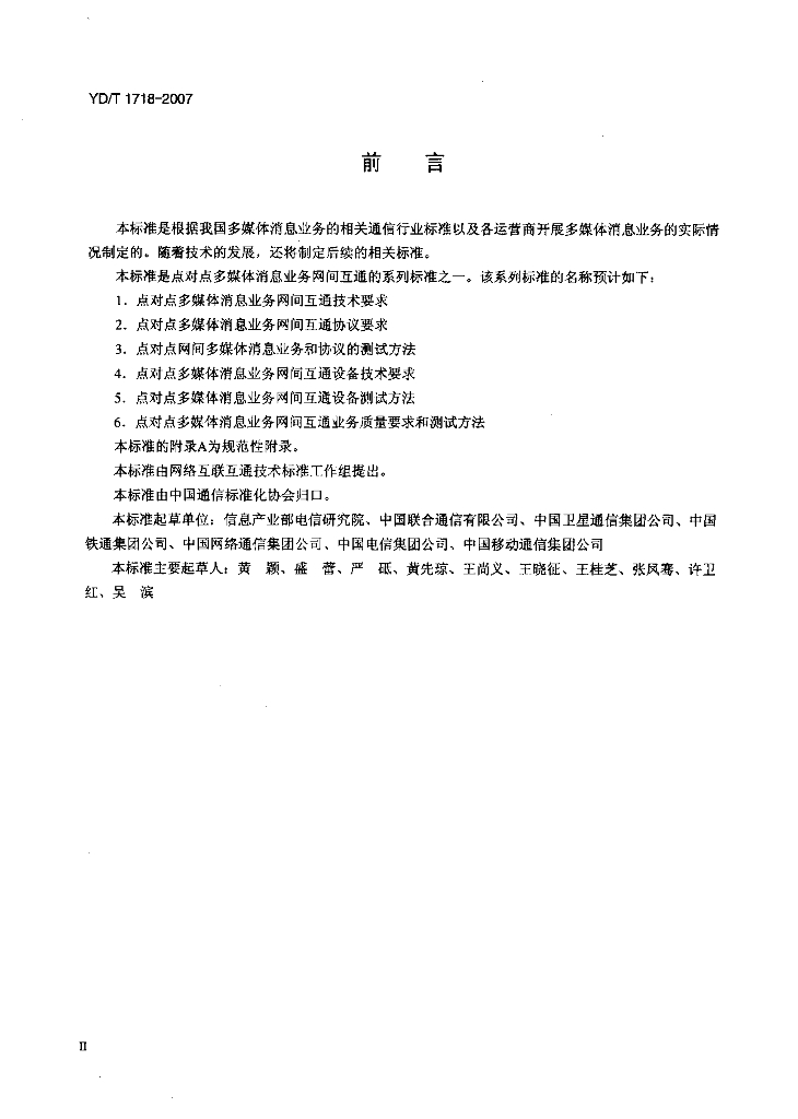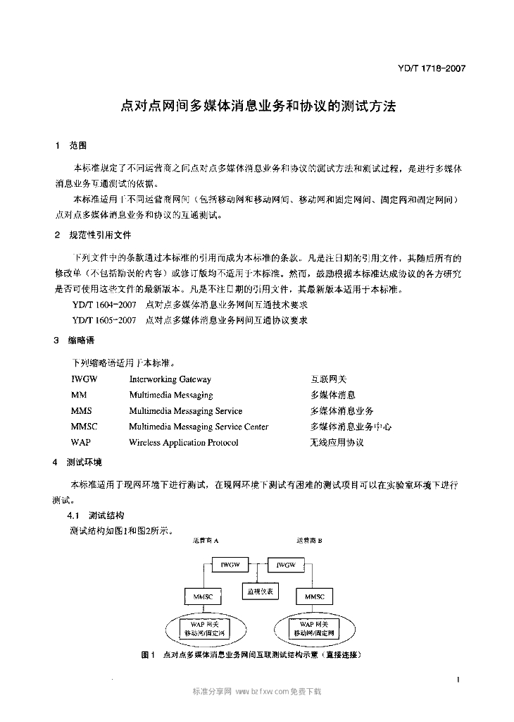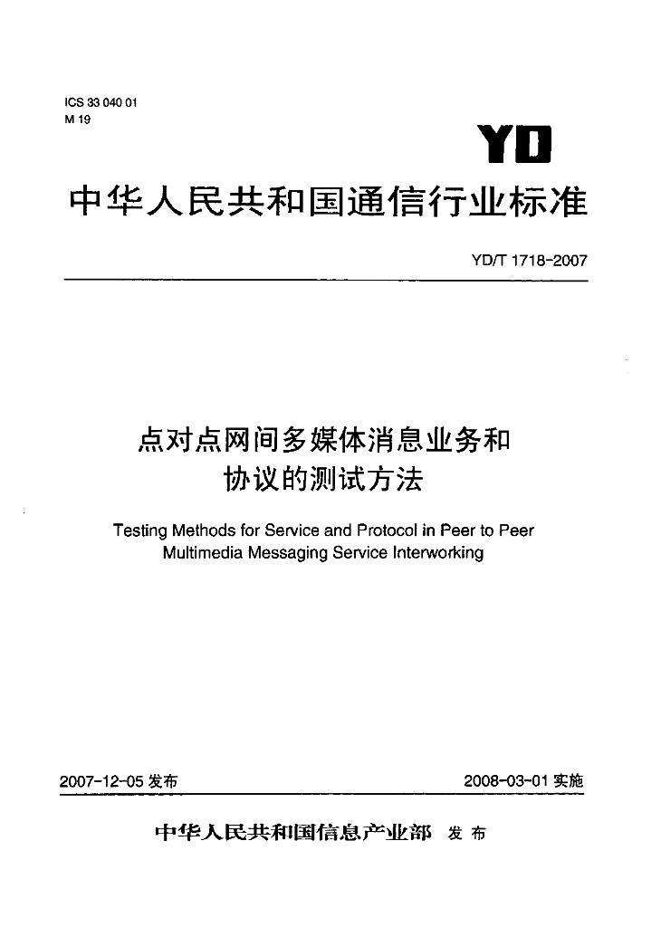 YD/T 1718-2007 点对点网间多媒体消息业务和协议的测试方法