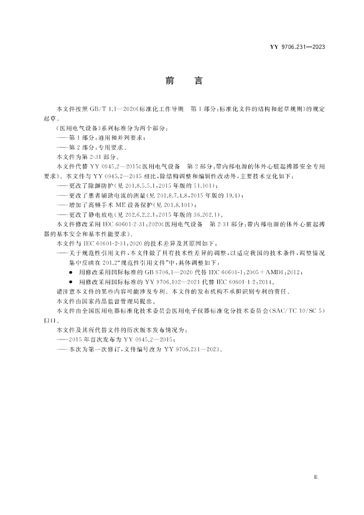 YY 9706.231-2023 医用电气设备 第2-31部分:带内部电源的体外心脏起搏器的基本安全和基本性能专用要求
