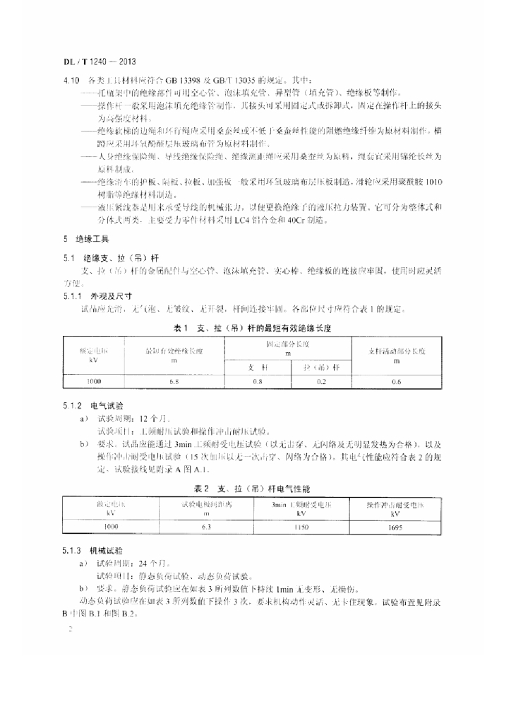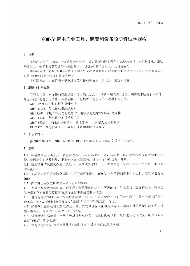 DL/T 1240-2013 1000kV带电作业工具、装置和设备预防性试验规程
