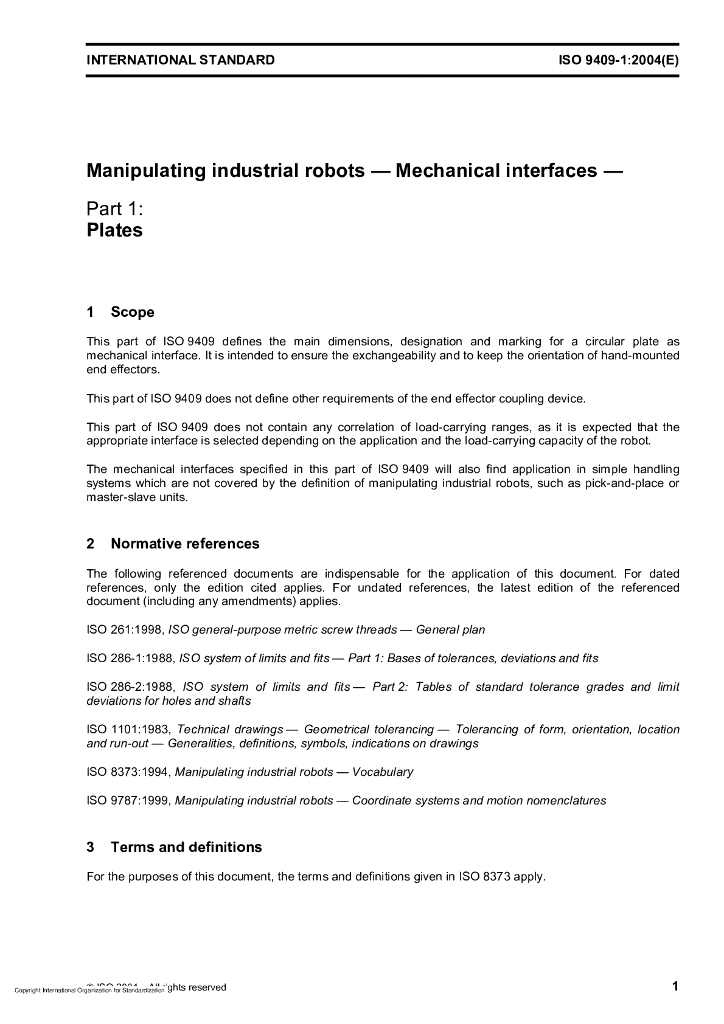 ISO 9409-1-2004 操作型工业机器人 机械接口 第1部分:圆型