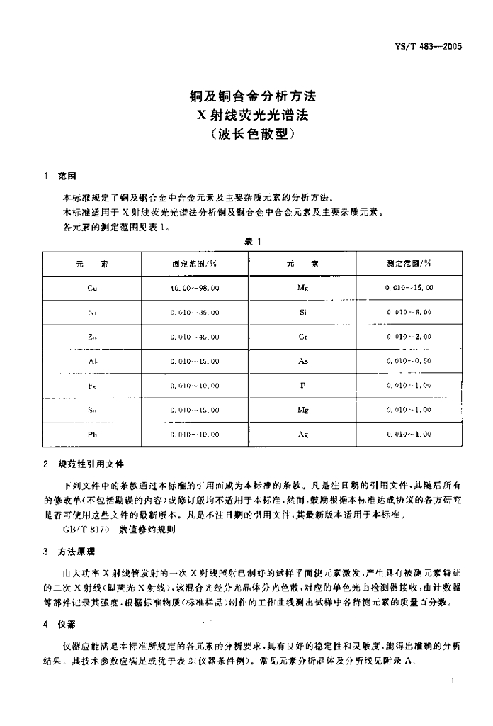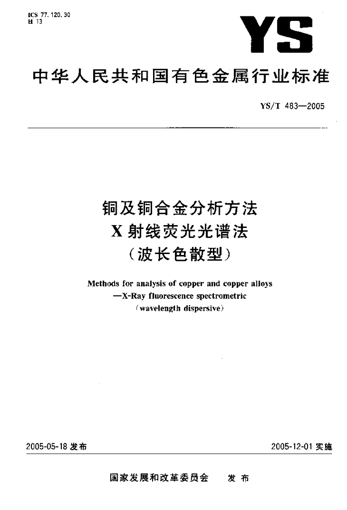 YS/T 483-2005 铜及铜合金分析方法X射线荧光光谱法(波长色散型)