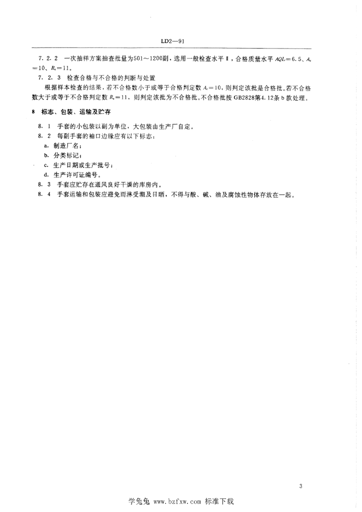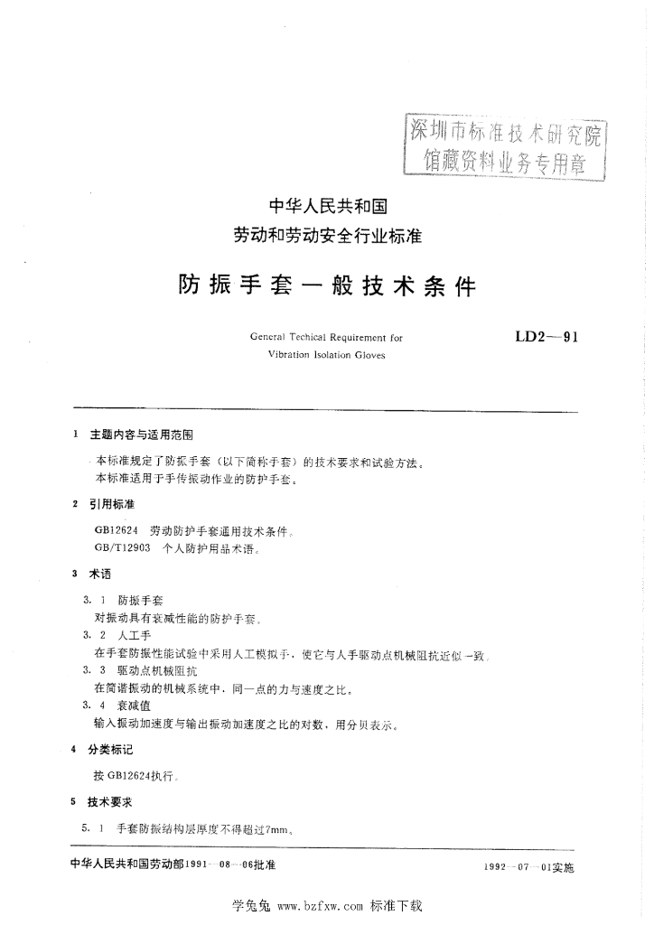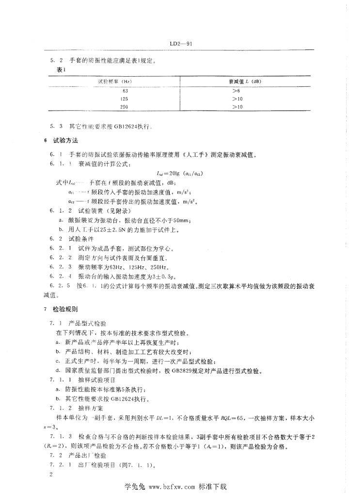 LD 2-1991 防震手套一般技术条件