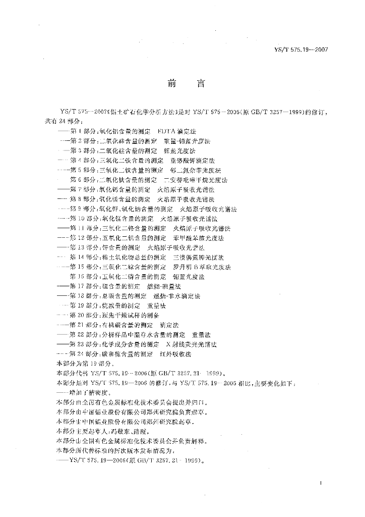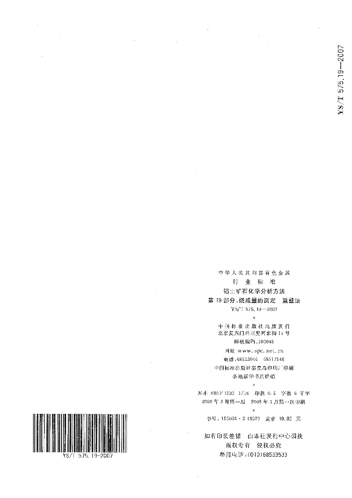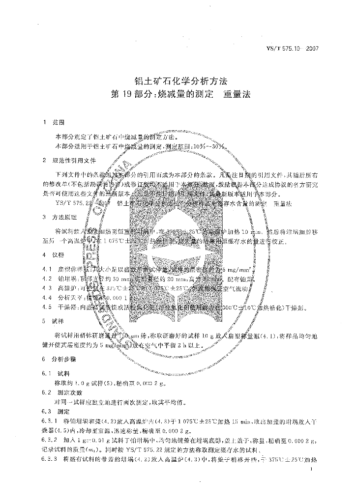 YS/T 575.19-2007 铝土矿石化学分析方法 第19部分 烧减量的测定 重量法