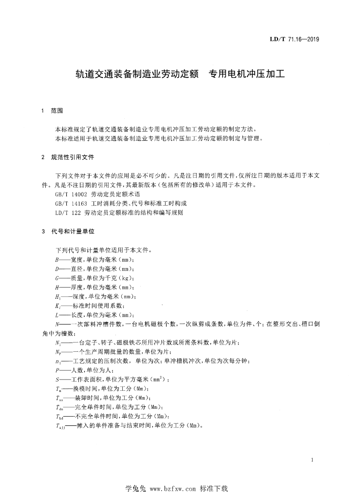 LD/T 71.16-2019 轨道交通装备制造业劳动定额 专用电机冲压加工