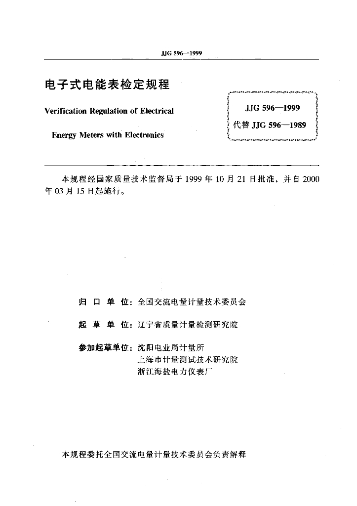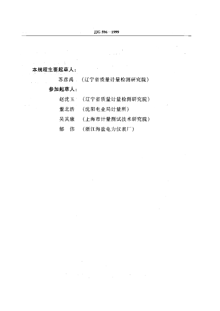 苏彦禹(辽宁省质量计量检测研究院)、赵沈玉(辽宁省质量计量检测研究院)、董北浩(沈阳电业局计量所)、吴其康(上海市计量测试技术研究院)、郁伟(浙江海盐电力仪表厂)