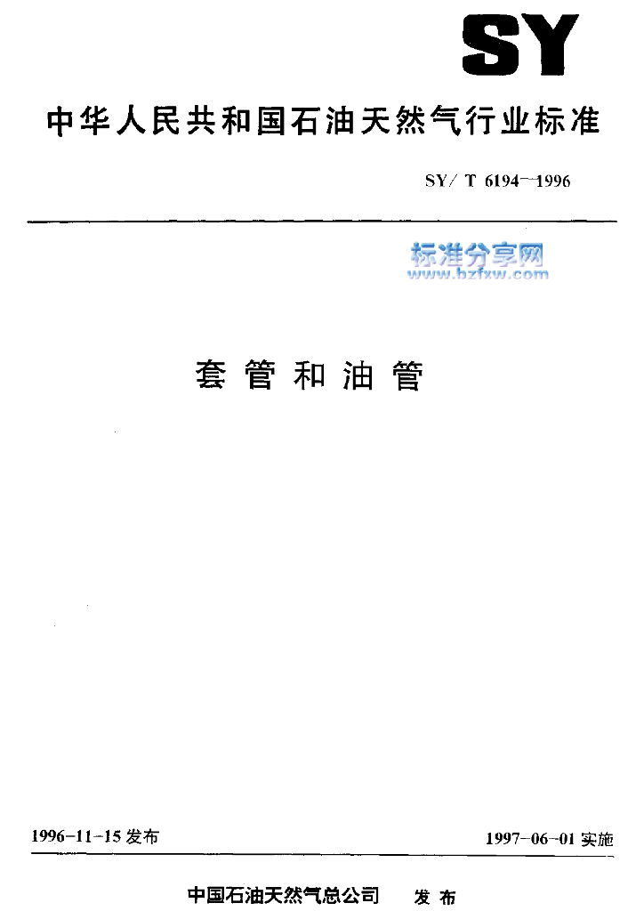 SY/T 6194-1996 套管和油管