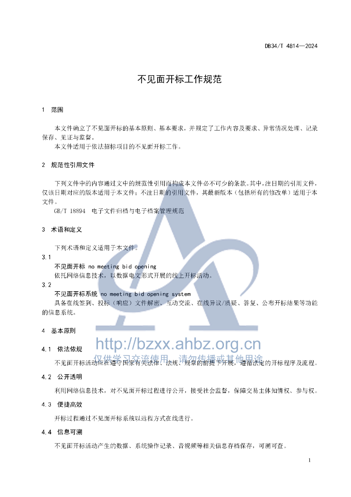 DB34/T 4814-2024 不见面开标工作规范