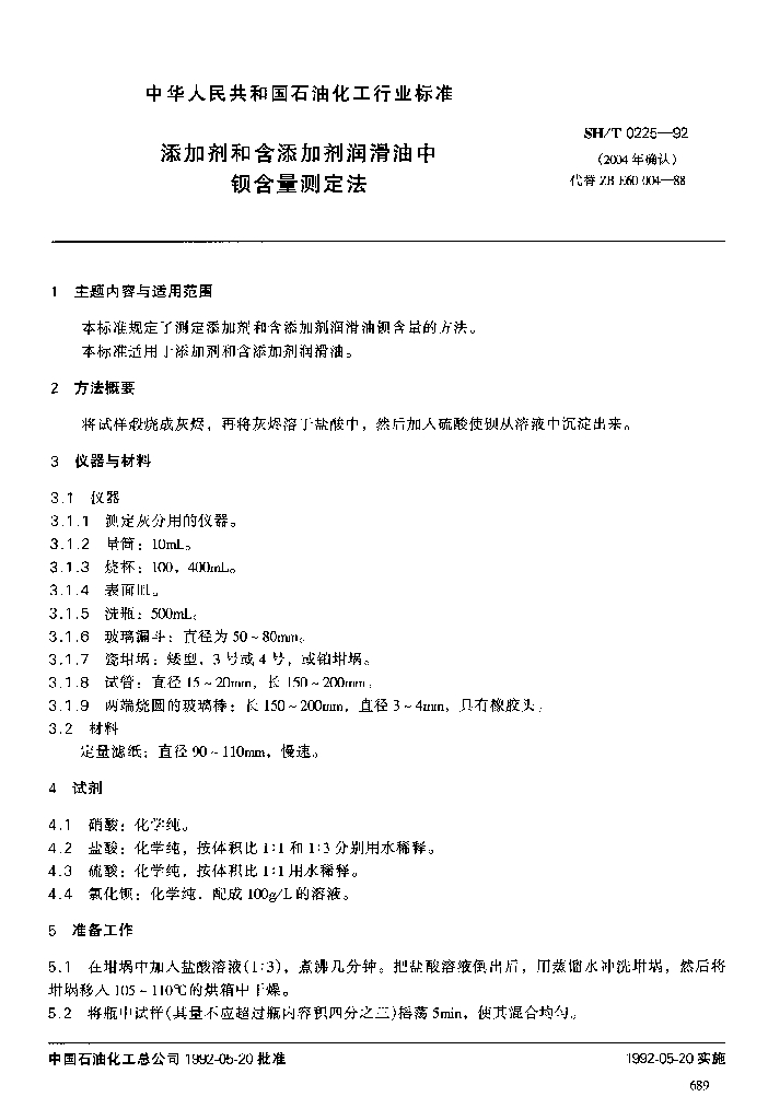 SH/T 0225-1992 添加剂和含添加剂润滑油中钡含量测定法