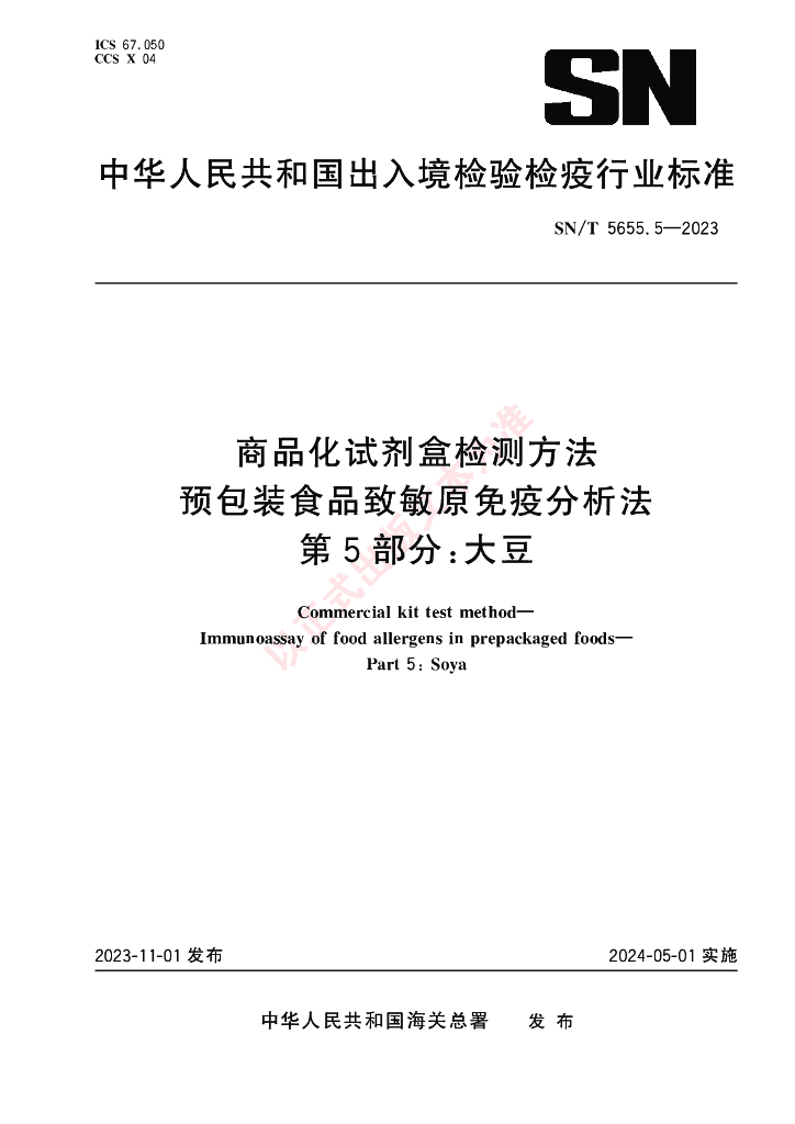 SN/T 5655.5-2023 商品化试剂盒检测方法 预包装食品致敏原免疫分析法 第5部分:大豆