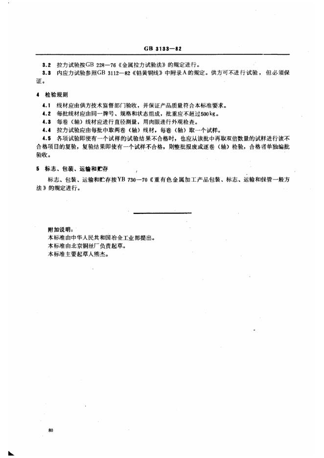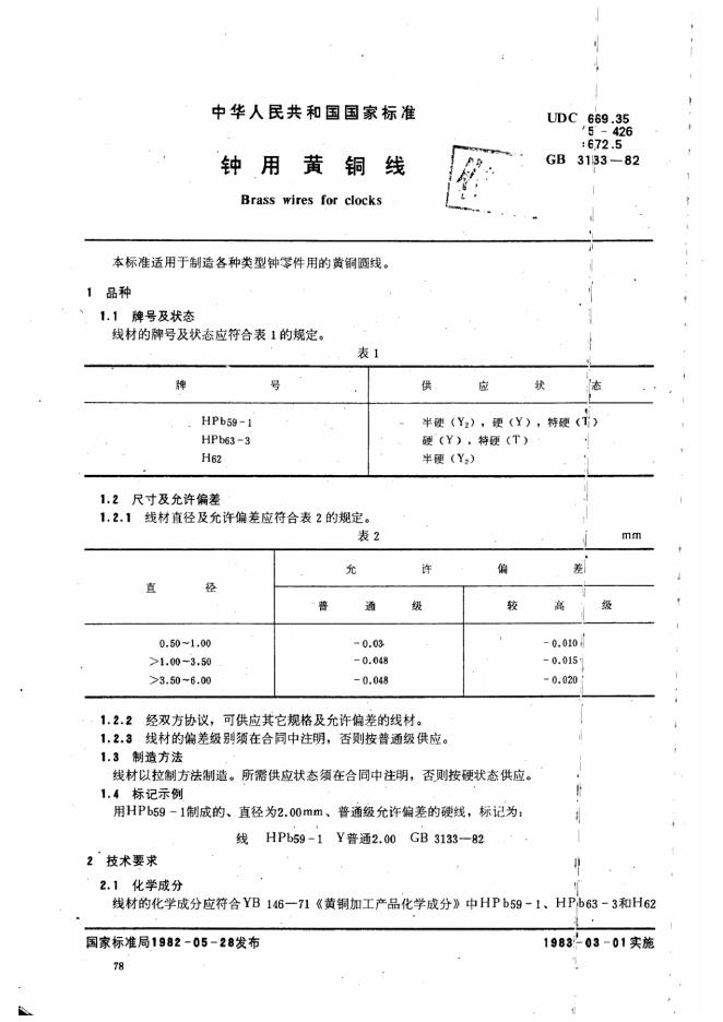GB/T 3133-1982 钟用黄铜线