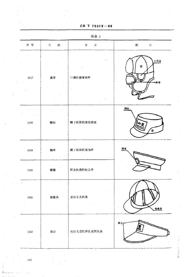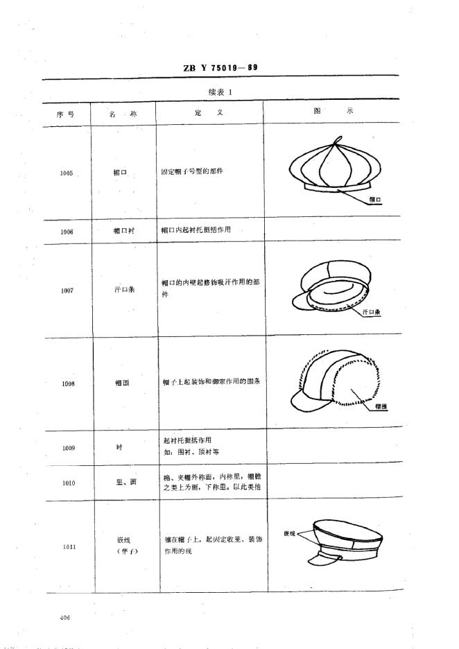 ZBY 75019-1989 缝制帽术语