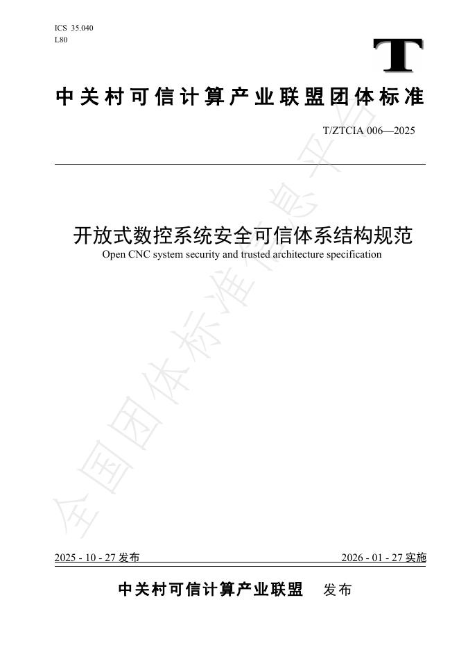 T/ZTCIA 006-2025 开放式数控系统安全可信体系结构规范