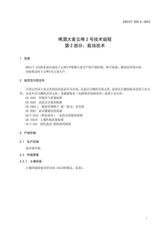 DB53/T 524.2-2013 啤酒大麦云啤2号技术规程 第2部分 栽培技术