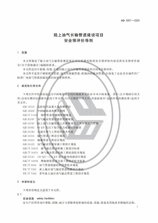 AQ 3057-2025 陆上油气长输管道建设项目安全预评价导则