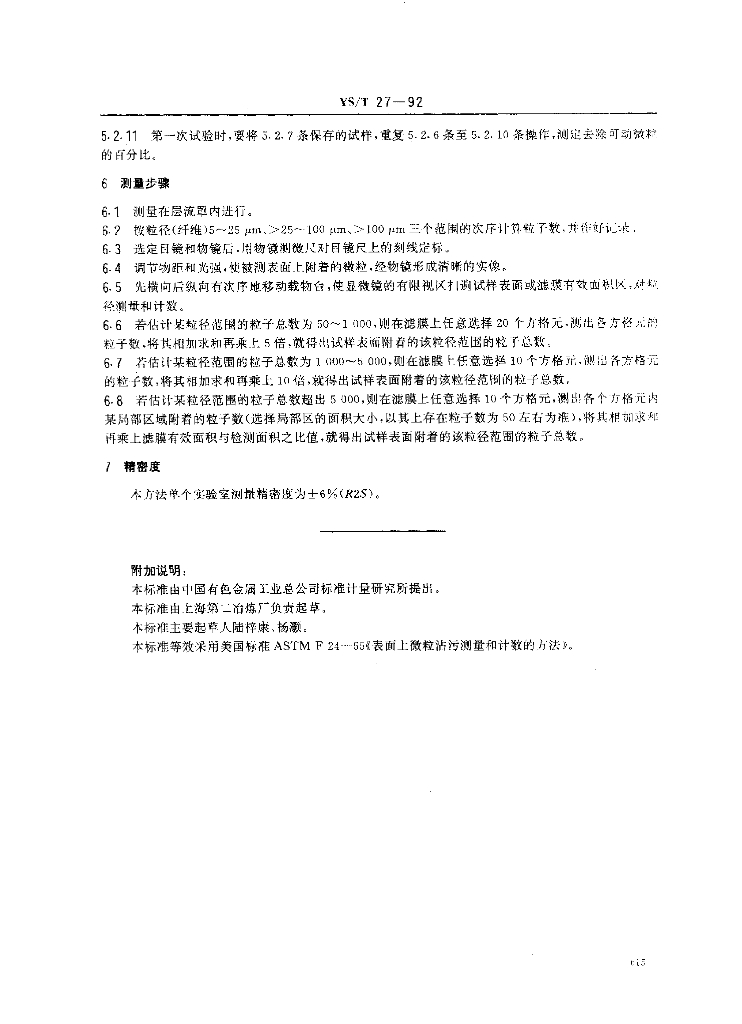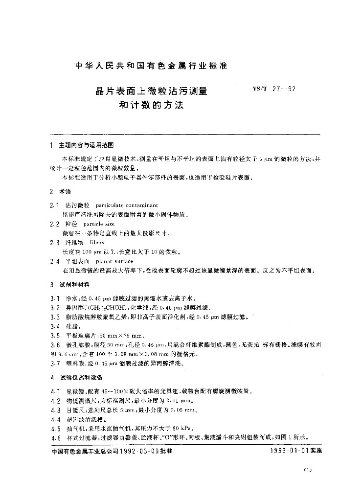 YS/T 27-1992 晶片表面上微粒沾污测量和计数的方法