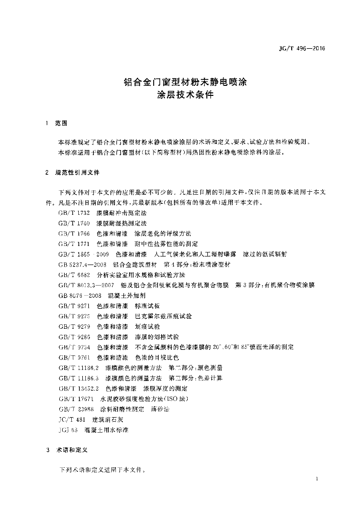 JG/T 496-2016 铝合金门窗型材粉末静电喷涂涂层技术条件