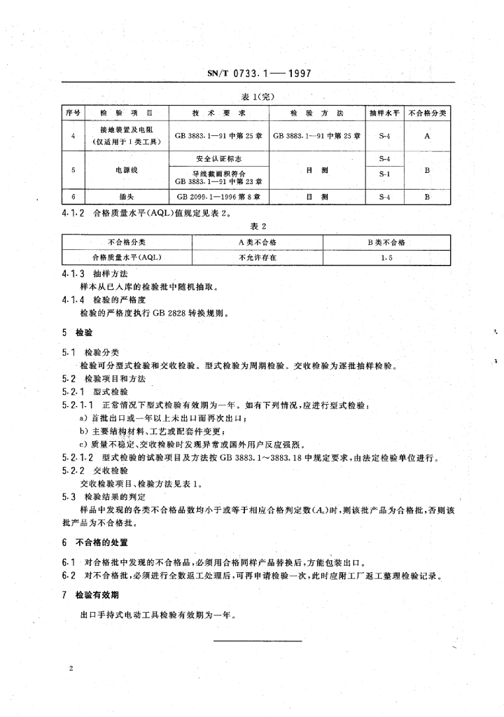 SN/T 0733.1-1997 出口手持式电动工具安全检验规程