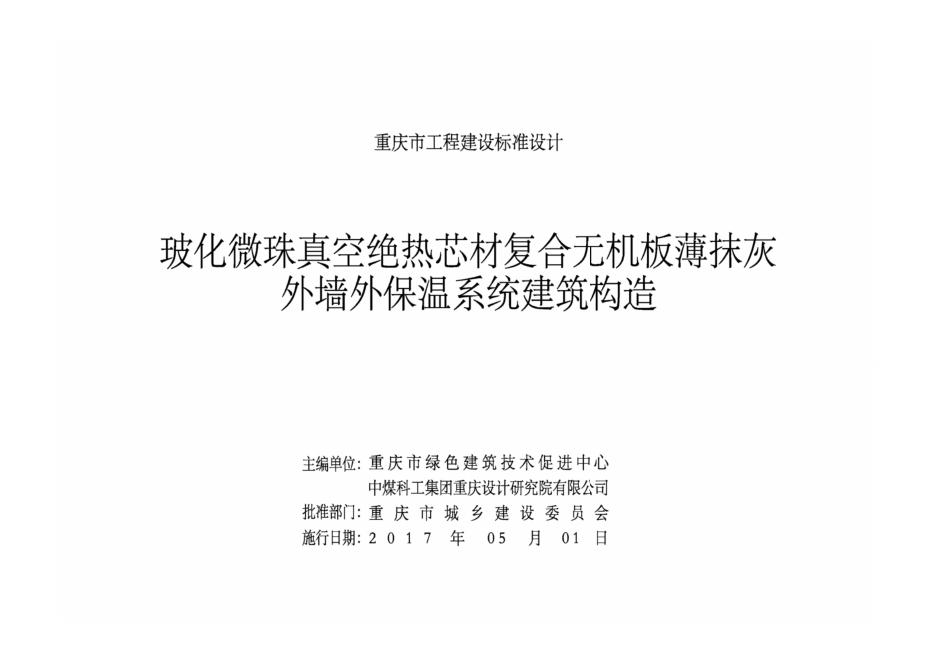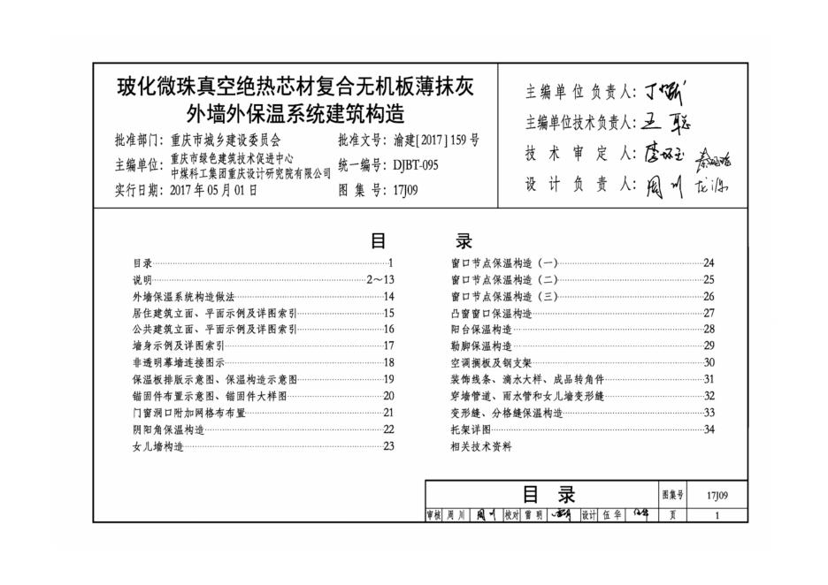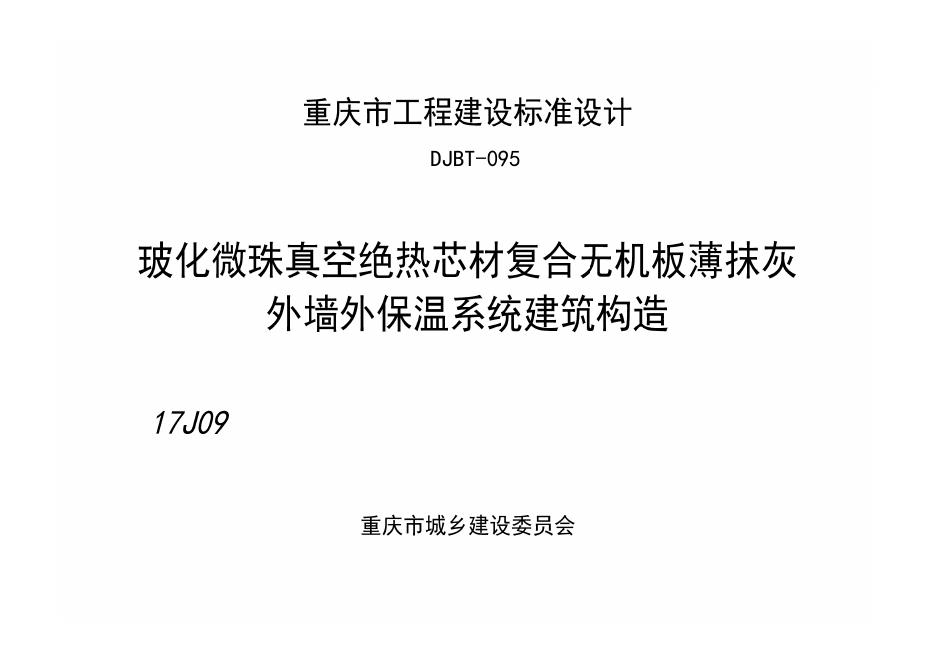 渝17J09 玻化微珠真空绝热芯材复合无机板薄抹灰外墙外保温系统建筑构造图集(DJBT-095)