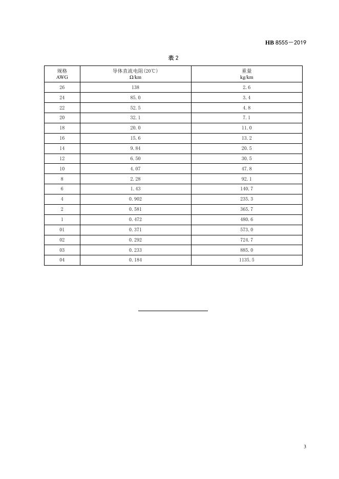HB 8555-2019 航空用镀镍铜芯辐照交联乙烯-四氟乙烯共聚物双层挤制绝缘电线