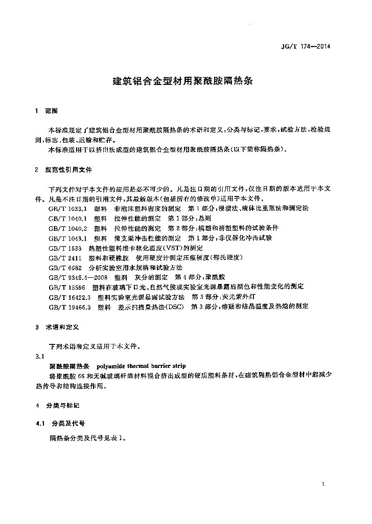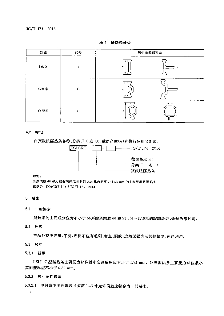 JG/T 174-2014 建筑铝合金型材用聚酰胺隔热条