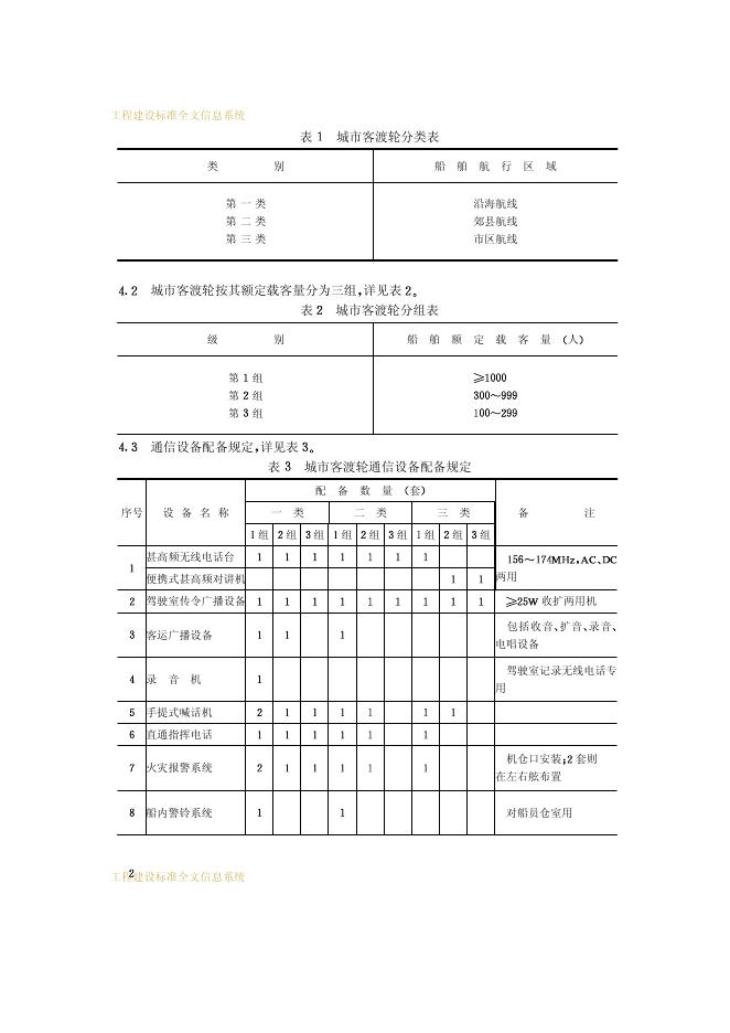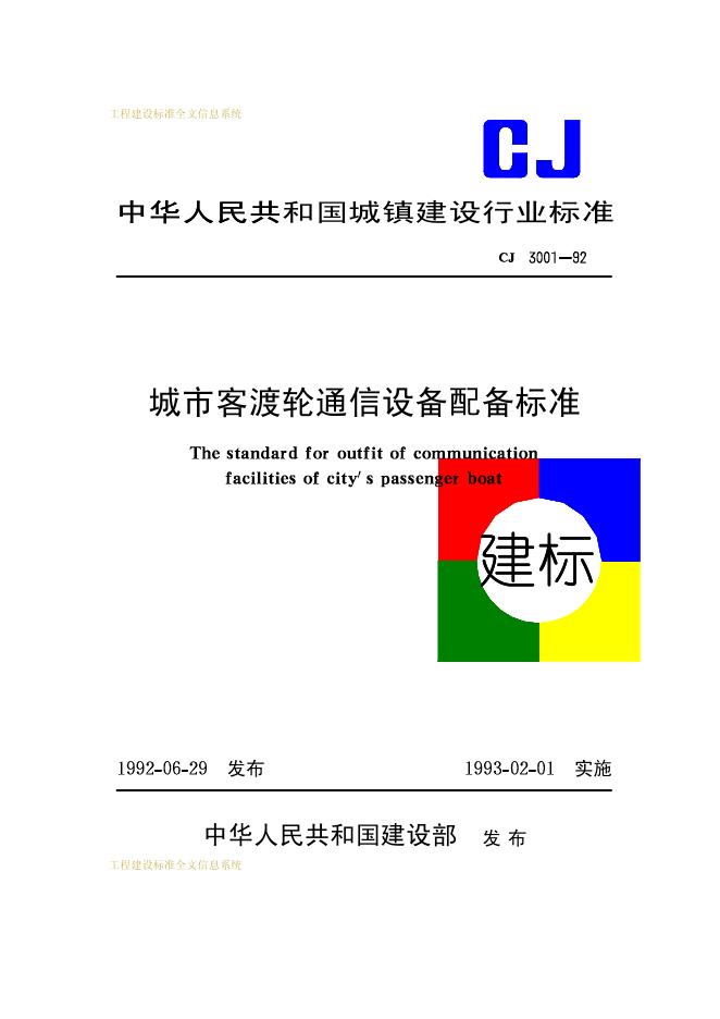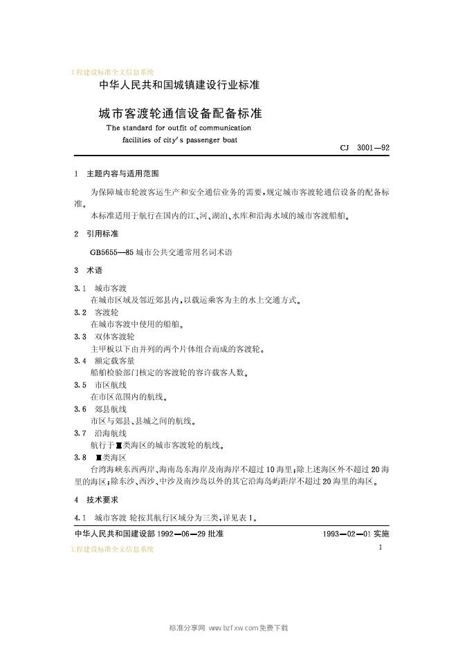 CJ 3001-1992 城市客渡轮通信设备配备标准