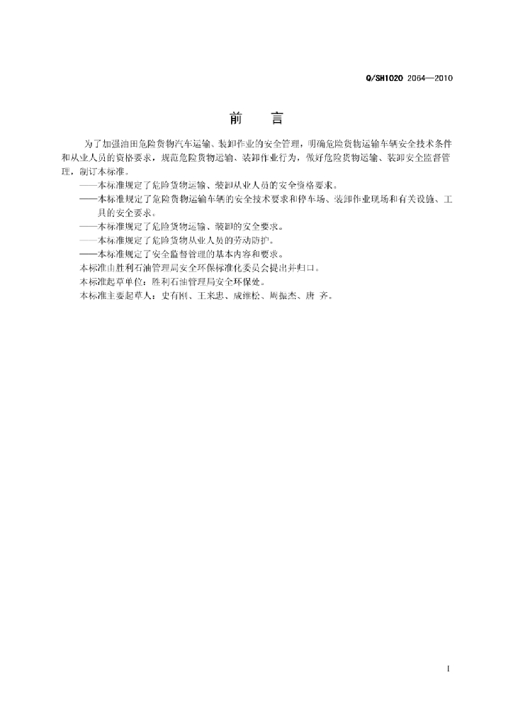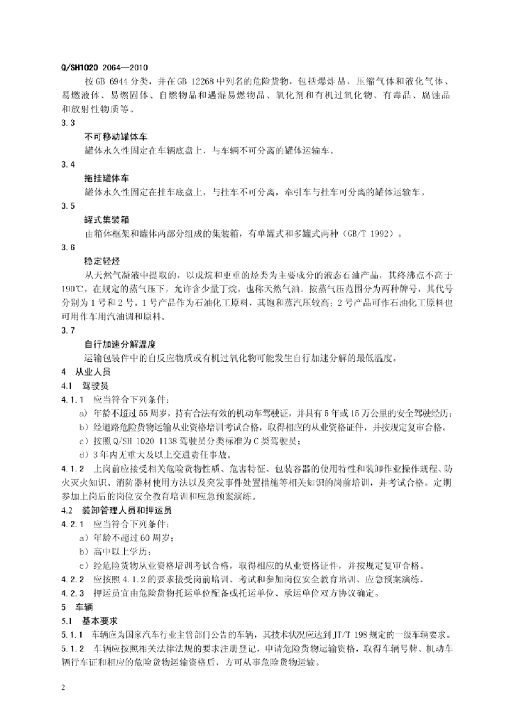 Q/SH1020 2064-2010 汽车运输、装卸危险货物安全规程