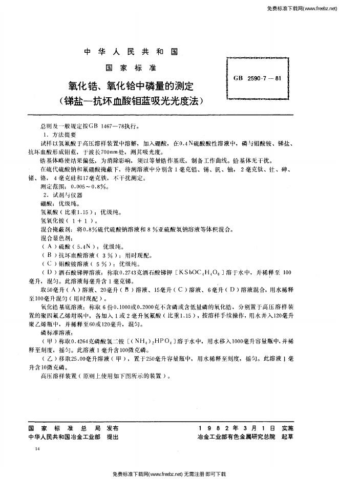 GB/T 2590.7-1981 氧化锆、氧化铪中磷量的测定 锑盐-抗坏血酸钼蓝吸光光度法