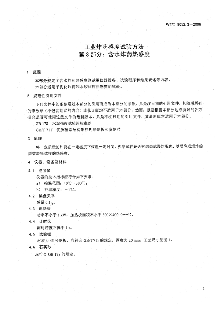 WJ/T 9052.3-2006 工业炸药感度试验方法 第3部分:含水炸药热感度