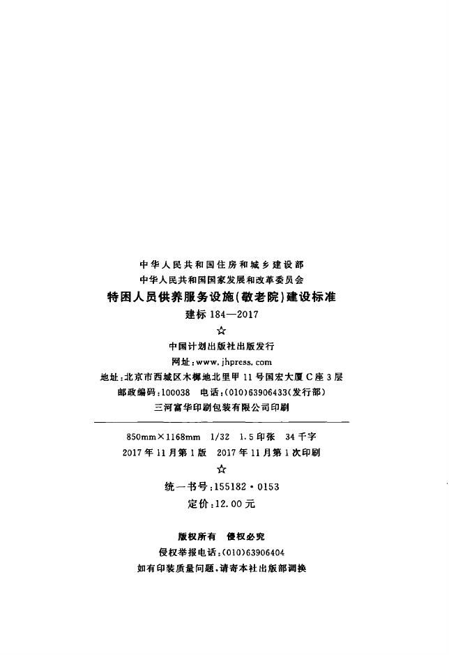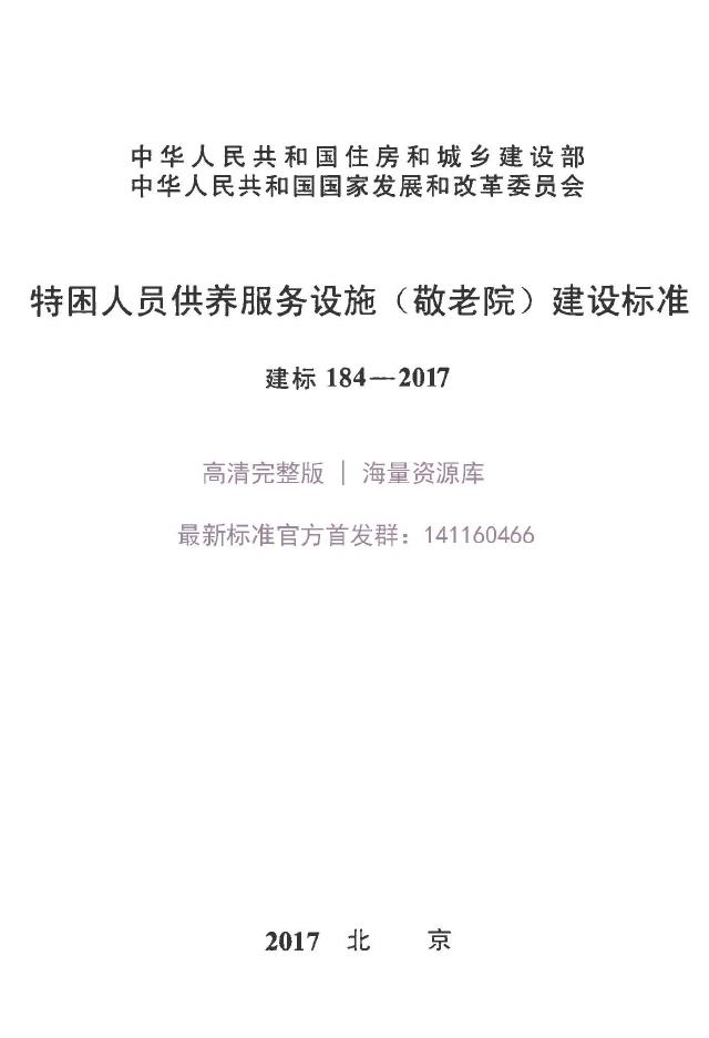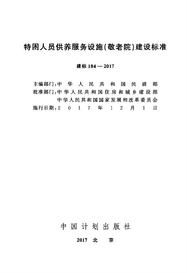建标 184-2017 特困人员供养服务设施(敬老院)建设标准
