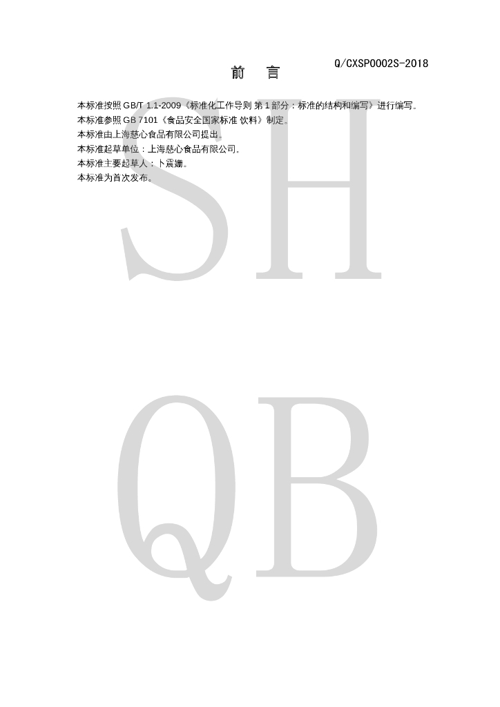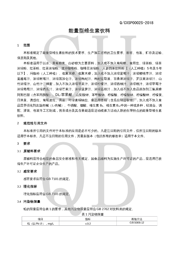 Q/CXSP 0002S-2018 能量型维生素饮料