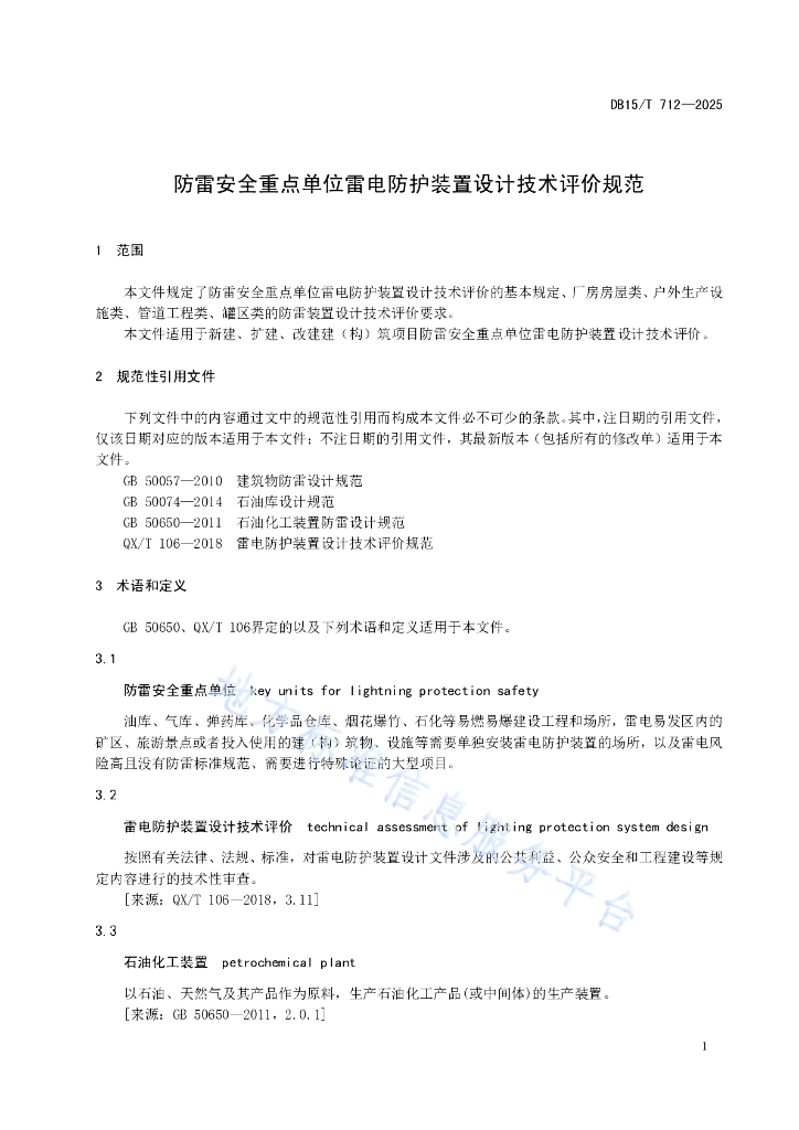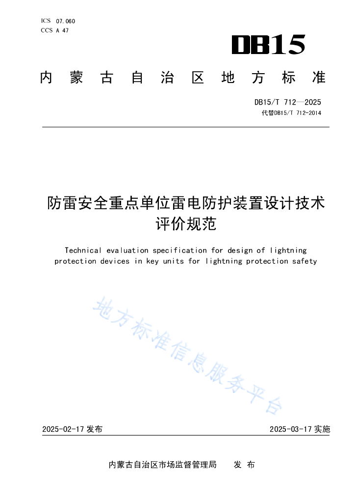 DB15/T 712-2025 防雷安全重点单位雷电防护装置设计技术评价规范