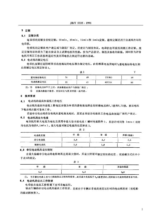 JB/T 5335-1991 蓄电池车辆用直流电动机 基本技术条件